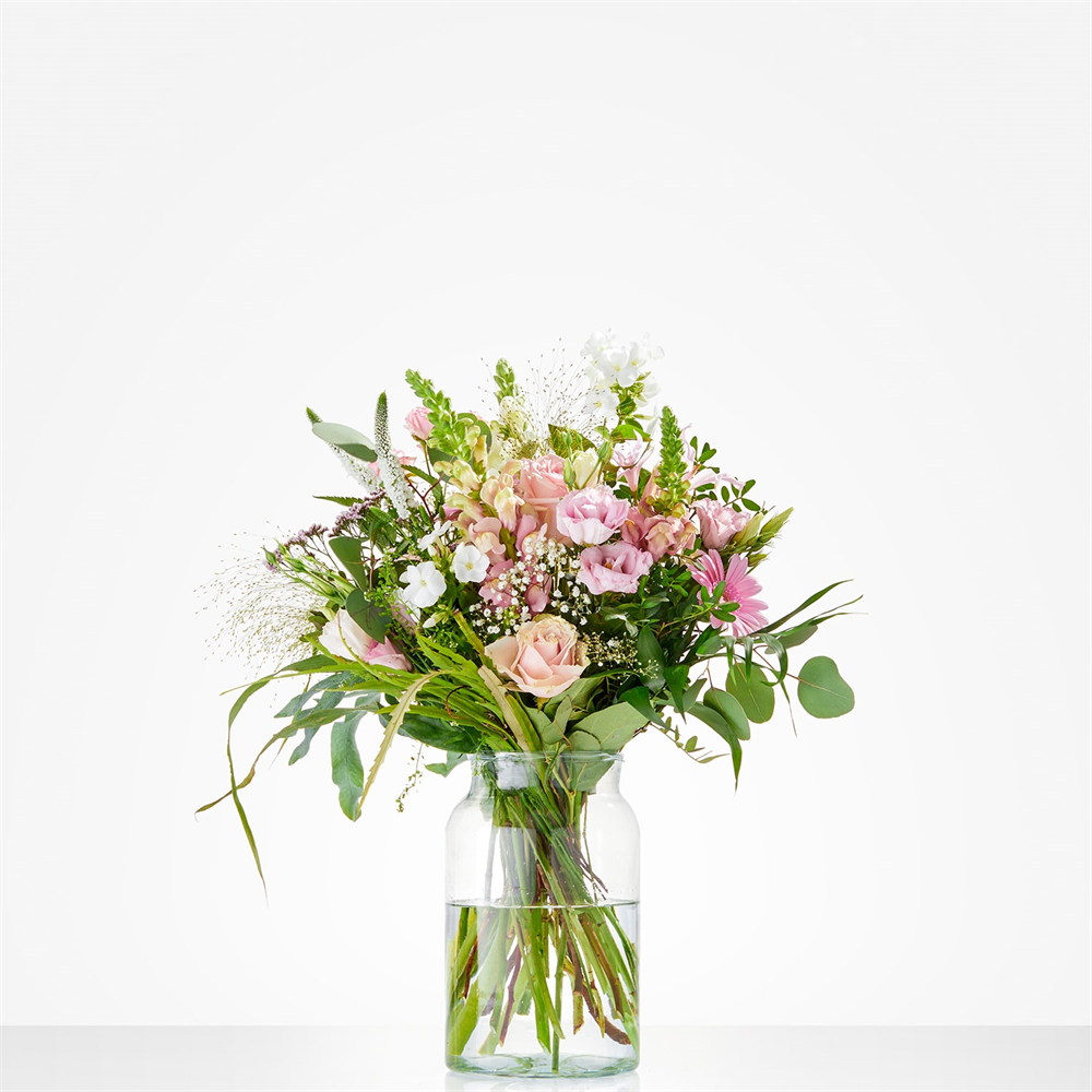 Je hebt van die boeketten die voor iedereen geschikt zijn. Voor iemand die speciaal voor jou is of waar dit boeket speciaal voor is. Leuk om te feliciteren, bedanken of een hart onder de riem te steken! (incl. vaas)